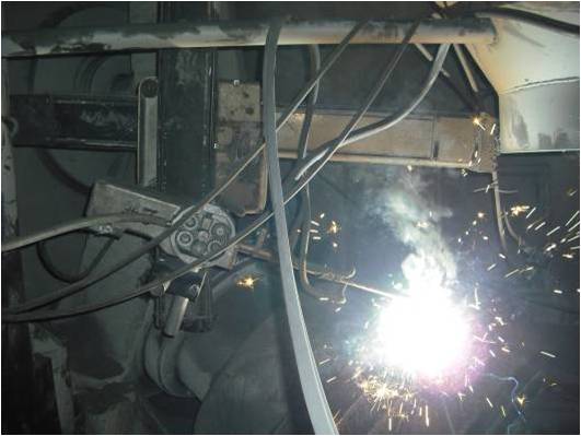 圖(2)現(xiàn)場(chǎng)藥芯焊絲修復(fù)磨損